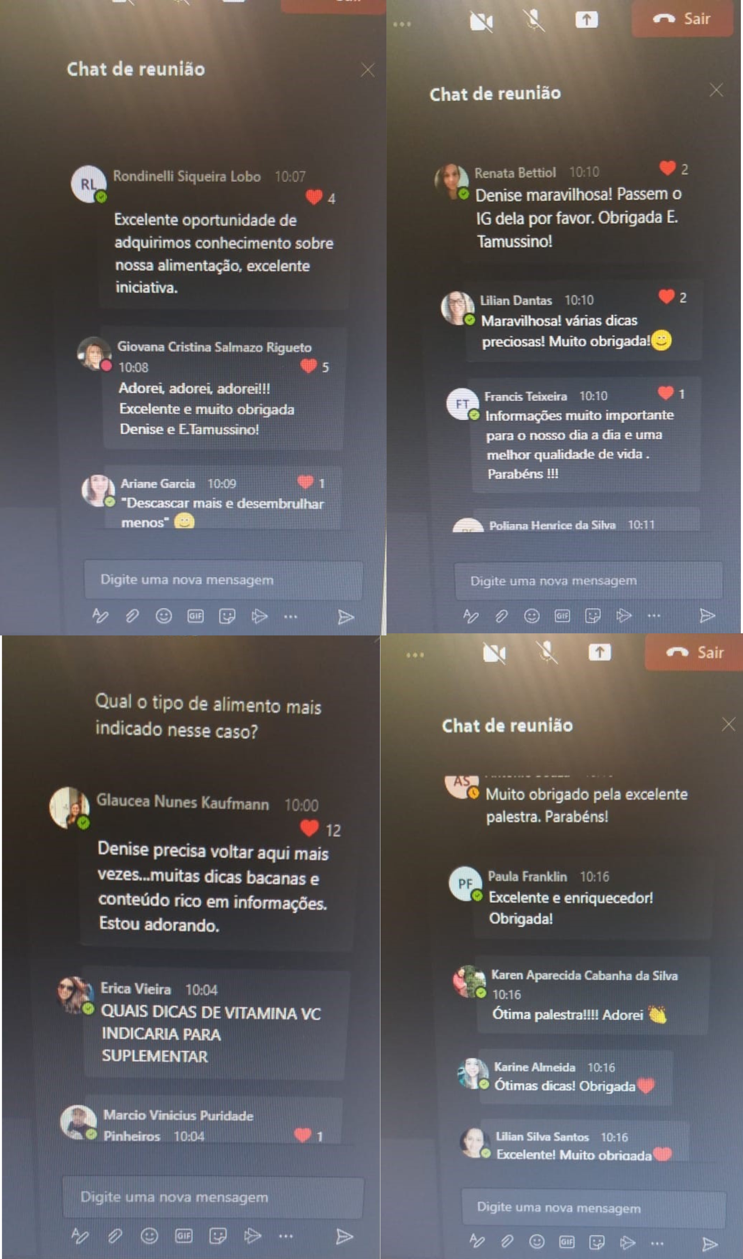 Além do bate-papo, a dra. Denise nos deixou material para compartilharmos internamente e em nossas redes sociais. Sem dúvida, o que não falta agora é mais esclarecimento para iniciarmos nossa reeducação alimentar.